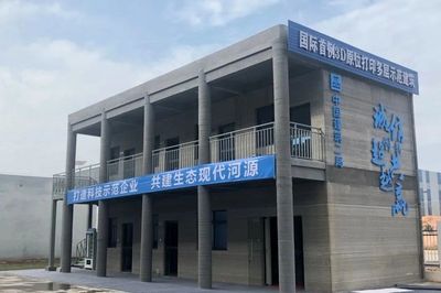 One of the world's largest 3D-printed construction - a two-story office building - built in Heyuan City in south China's Guangdong Province. Including two floors, six offices and one exhibition hall, with a building area of 230 square meters.