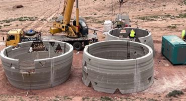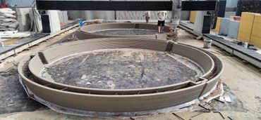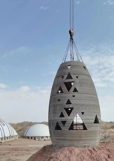 The construction process is modular and assembled using 3D printing technology. The outer shell is printed with 5 cm concrete and the internal structure is casted with C40 reinforced concrete.